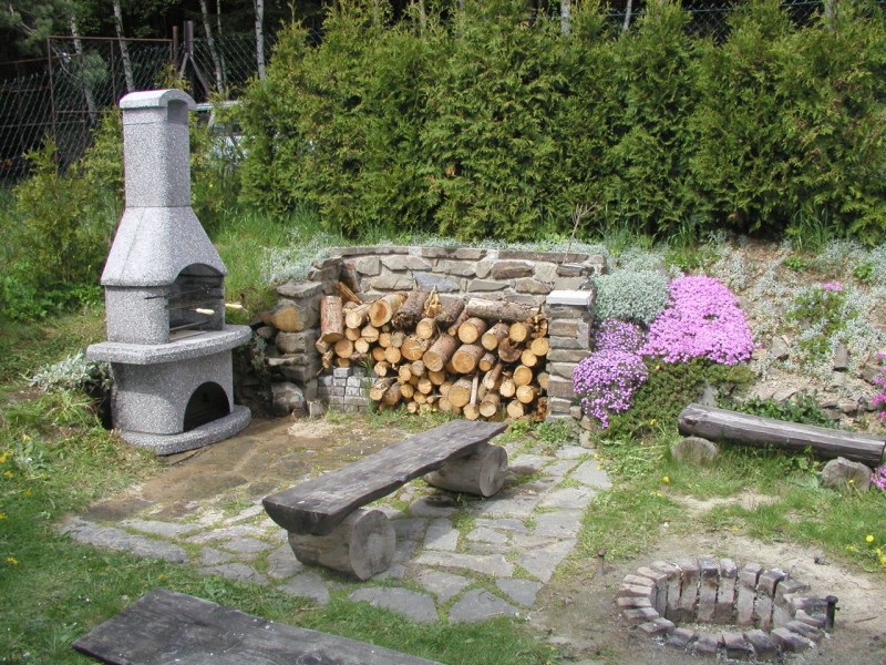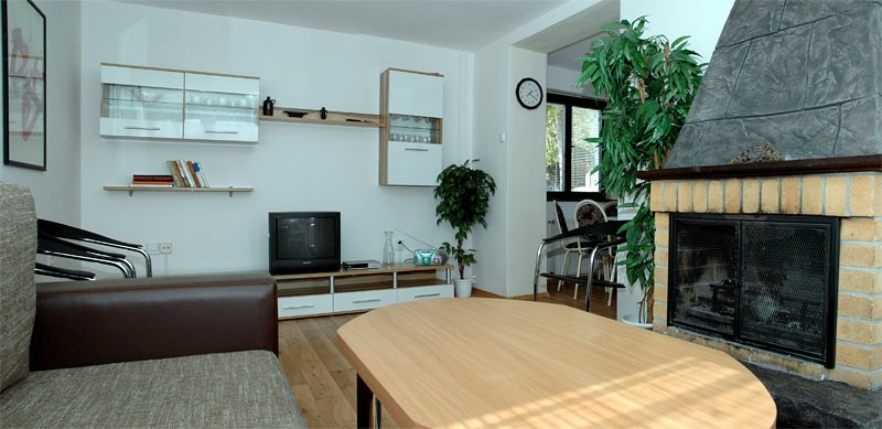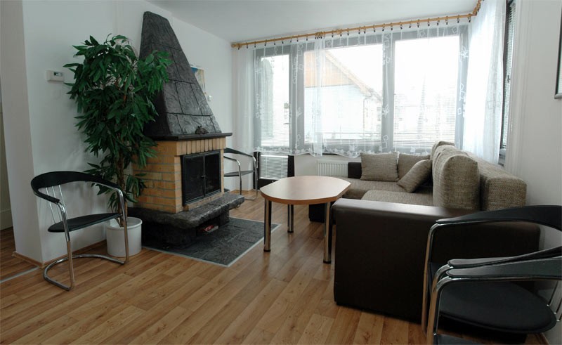 V přízemí se nachází kuchyně, obývací pokoj s krbem. V podkroví chaty jsou k dispozici dva třílůžkové pokoje a posezení s pohovkou a křesly. Na oploceném pozemku cca 600 m2 je pak možno využít zahradní nábytek, pískoviště s hračkami, ohniště s posezením, zahradní krb s udírnou a parkoviště pro jeden osobní automobil (druhý osobní automobil je možno parkovat přímo před chatou).