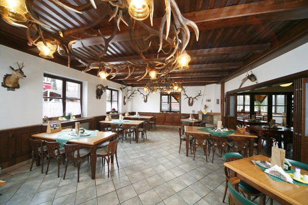 Součástí penzionu je stylová nekuřácká restaurace s loveckým salonkem a výhledem do jízdárny. Bohatá nabídka jídel, husí a zvěřinové speciality. Kapacita restaurace 120 míst, wifi. Během týdne možnost výběru jídel z poledního menu.