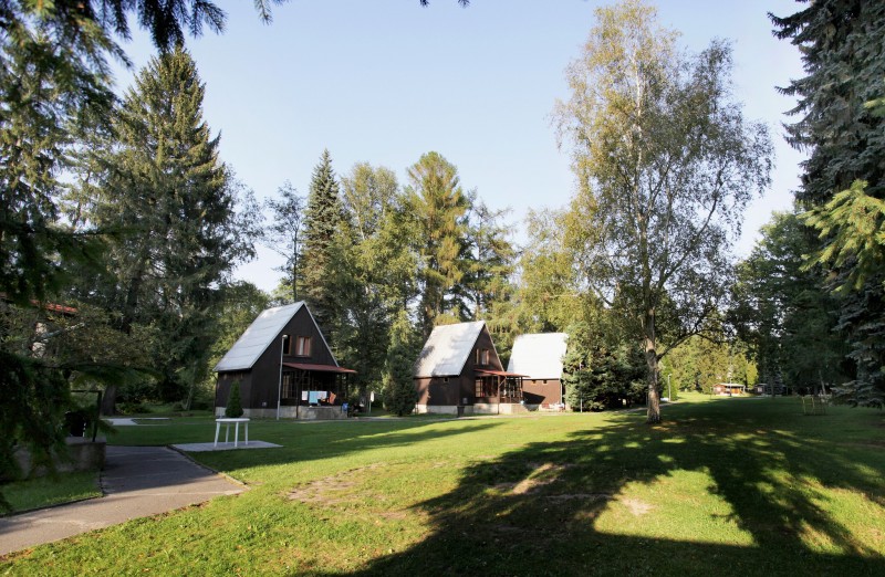 10 menších chat s kapacitou 4 osob. Chaty disponuji vlastním WC, umyvadlem a elektrickým vytápěním. K dispozici je terasa s posezením. K dispozici je společná koupelna se sprchami