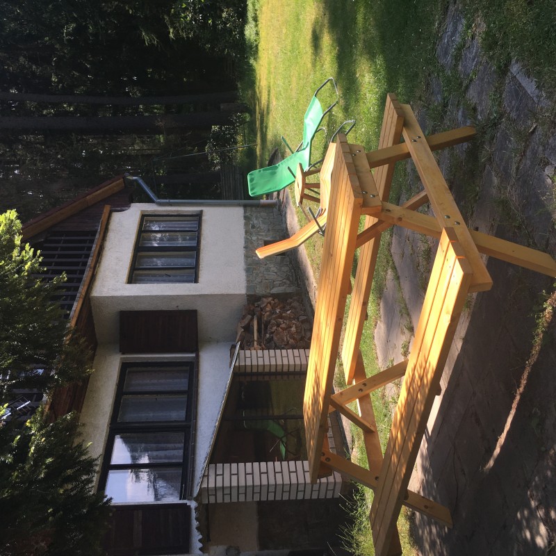 V přízemí chaty se kromě obývacího pokoje, kuchyňě - vybavené základním nádobím, a jídelny, nachází také oddělená koupelna a toaleta. V patře se pak nachází ložnice s jednou manželskou a dvěma jednotlivými postelemi. Možnost venkovního posezení před chatou je samozřejmostí.