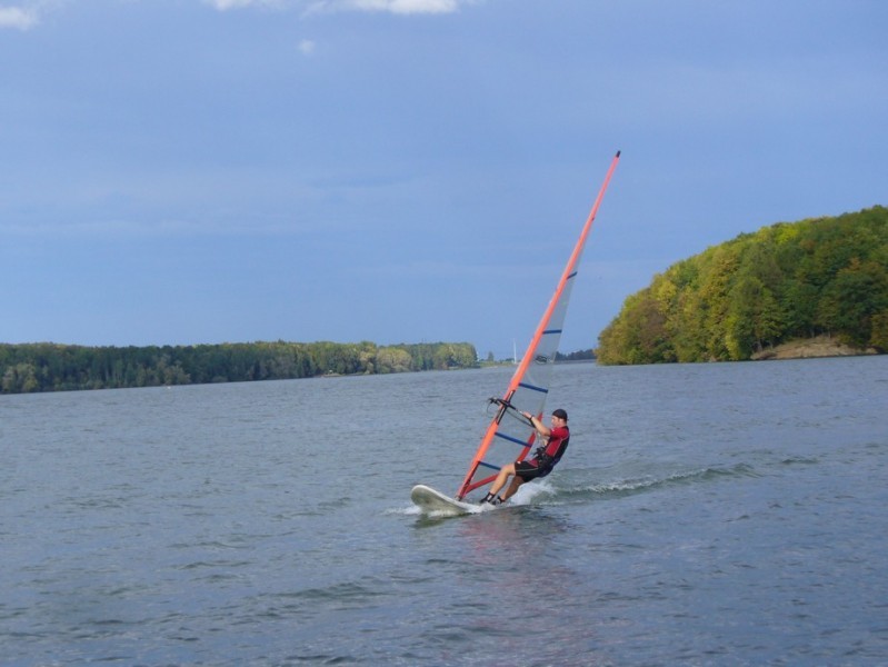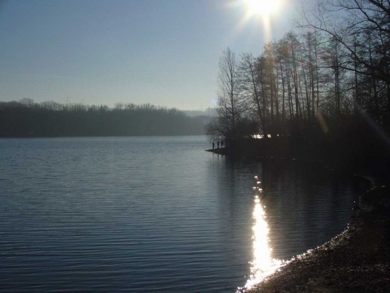 V zimě bruslení a běžkování po zamrzlé přehradě.