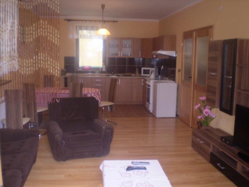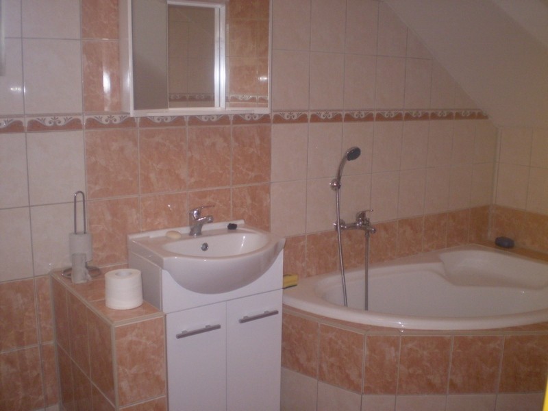V patře tři dvoulůžkové pokoje, do jednoho je možná přistýlka, postele povlečeny ložním prádlem, v chodbě WC, koupelna s vanou, v přízemí vybavená kuchyň s obývacím pokojem se vstupem na terasu s grilem, v chodbě další WC, koupelna se sprchovacím koutem. V celém objektu bude jen Vámi požadovaný počet osob