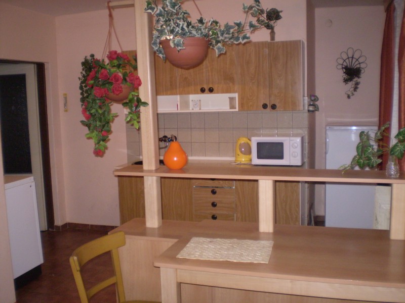 Kompletně vybavená kuchyňka veškerým kuchyňským nádobím , el. sporák , lednice, rychlovarná konvice , po domluvě uvaří i v místní restauraci.