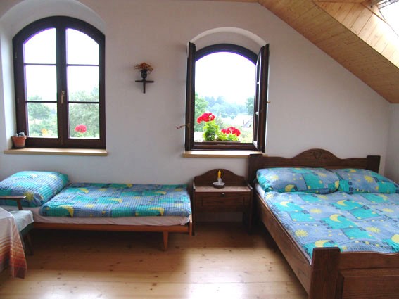 Ve dvoulůžkovém pokoji lze využít přistýlku a na půdičce u čtyřlůžkového pokoje jsou 2 přistýlky. Cena přistýlky v sezóně 150 Kč/noc, mimo sezónu o víkendech 120 Kč/noc, mimo víkend 110 Kč/noc.