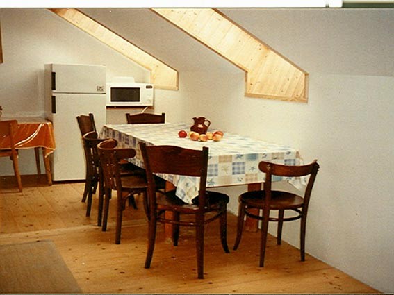 APARTMÁN v podkroví nové chalupy na Vysočině s osmi lůžky: 3 pokoje + kuchyň s jídelnou + koupelna s WC (70m2). Vařič, lednička, mrazák, mikrovlnná trouba, varná konvice, nádobí pro běžné vaření a stolování, rádio, televizor, WiFi. Z oken apartmánu výhled na hrad Lipnice nad Sázavou.