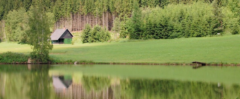 Na půli cesty mezi Prahou a Brnem, v kraji lesnatém a rybníků plném stojí ve zvlněném terénu Českomoravské vrchoviny dřevěná chata. Vyrostla zde na louce, v údolí Krupského potoka, jen pár metrů od břehu rybníka. Ačkoliv je samotářka lidé ji mají rádi a často se sem vrací…