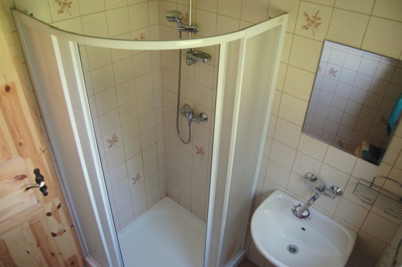 Po dřevěných schodech se lehce dostanete do podkroví, kde jsou 2 ložnice po 4 lůžkách. Možná je i přistýlka v každé z nich. K odkládání věcí v místnostech slouží dřevěné police a ramínkové věšáčky.