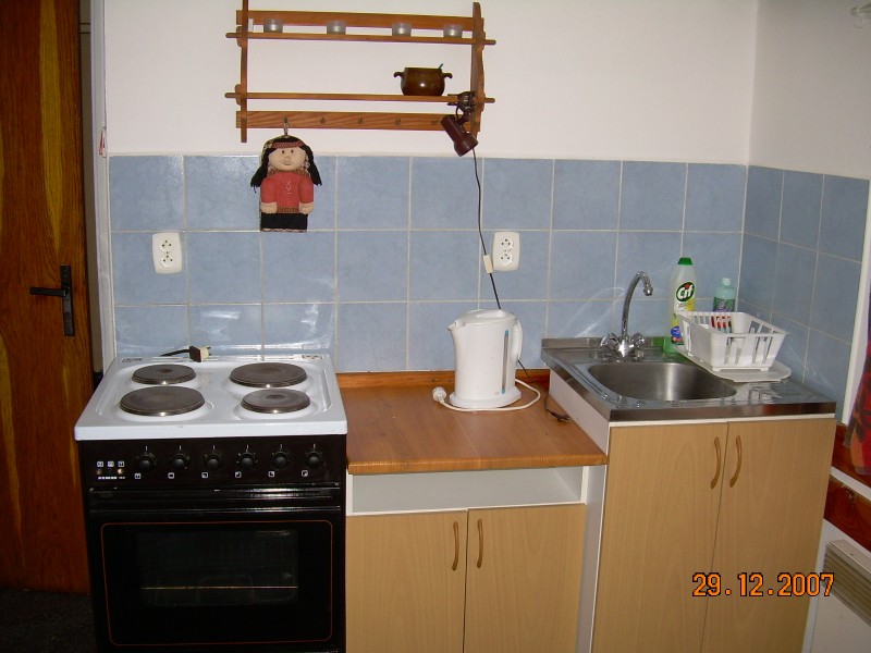 V hlavni mistnosti se nachazi nocleh pro 4 navstevniky spolu s kuchynkou a jidelnou, dve osoby mohou spocinout v ruzove loznici. Samozrejmosti je samostatna koupelna, samostatne WC a samostatny vchod. Spravce chaty je vzdy po ruce, bydli v prvnim patre objektu.