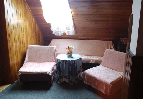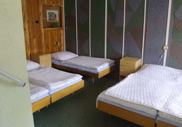 Všechny pokoje mají standardní vybavení pro ubytování. Na pokojích není televizor. Televizor včetně satelitu je pouze ve společenské místnosti.