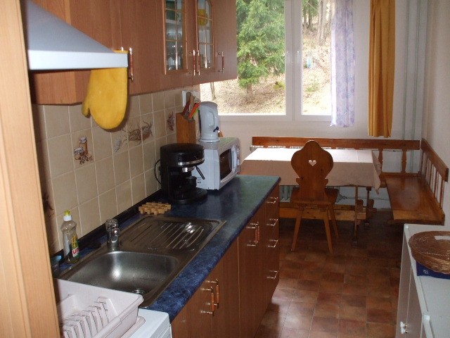 K dispozici je jeden čtyř lůžkový pokoj a jeden šěsti lůžkový. Pokoje se nachází v prvním patře bytu s balkonem, z kterého je výhled na lanovku. Vedle domu je garáž.Pronajímá se vždy celý byt.