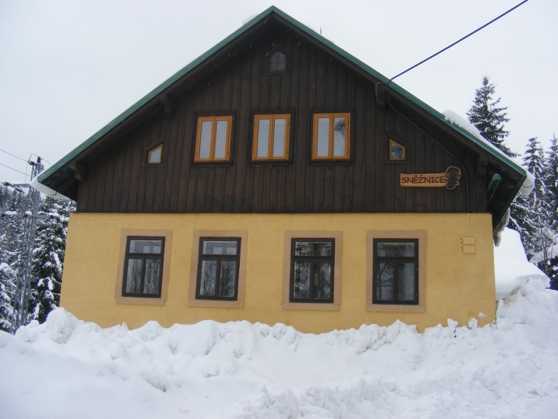 Chata Sněžnice se nachází asi 50m pod hlavní silnicí v obci Kořenov směrem na Harrachov.