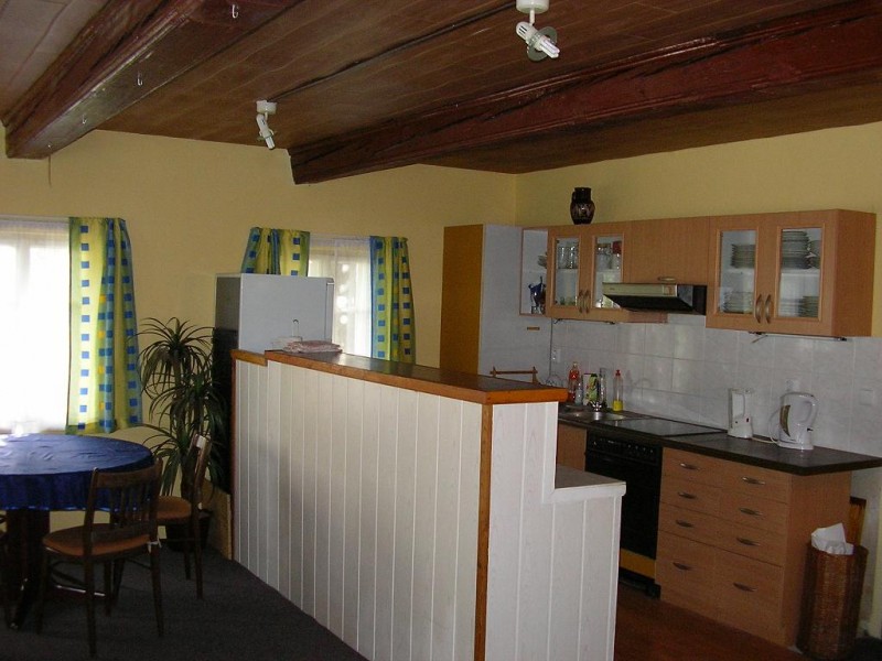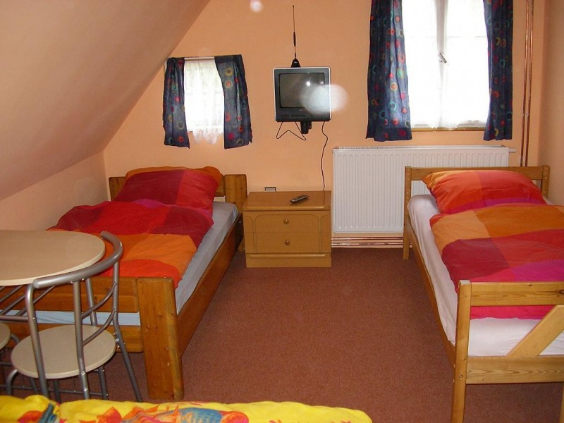 Nabízíme 7 pokojů, 3x 3 lůžkový, 3x 4 lůžkový, 1x 5 lůžkový. Velká společenská místnost s krbem. Plně vybavená kuchyň (mikrovlnná trouba, rychlovarná konev, nerezové nádobí, talíře, příbory, lednice, sklokeramická deska, trouba, myčka nádobí...).Objekt je vytápěn ústředním topením. Některé pokoje mají sociální zařízení na pokoji.