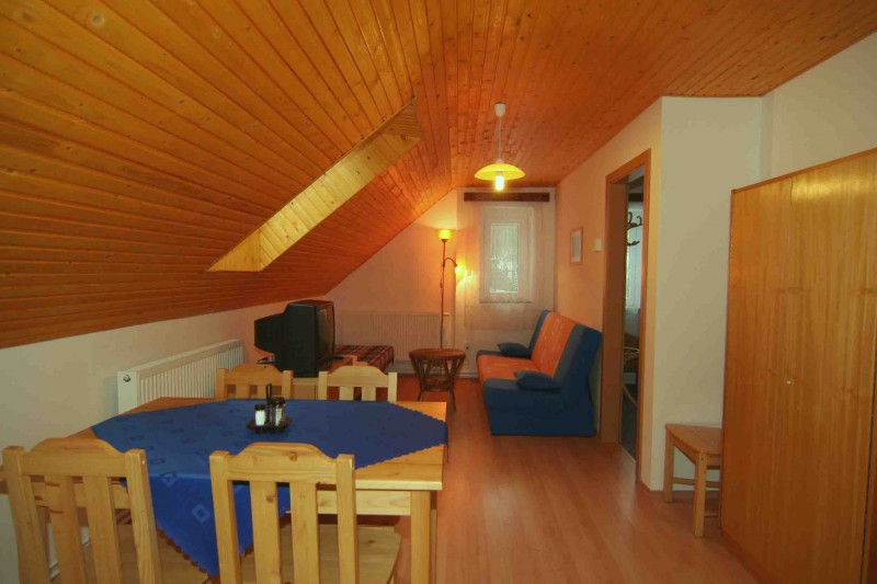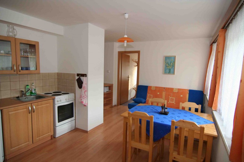 Ubytování v apartmánech, každý s vlastní koupelnou a vybavenou kuchyňkou, velmi klidné místo směrem k lyžařskému areálu Severák. K dispozici společenská místnost s biliárem a krbovými kamny, Wi-fi připojení na internet,terasa, hřiště, venkovní stolní tenis. Koupání 5 km, bobová dráha 700 m.