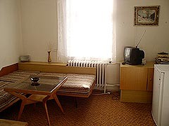 2.samostatný pokoj 1 lůžko s přistýlkou, sprchový kout, umývadlo, WC, lednice, vařič, televize, možnost použití kuchyně v apartmánu, který je ve stejném podlaží - cena za pokoj za den při plném obsazení 500,- Kč