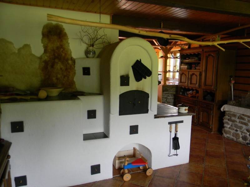 Vytápění: V celé chalupě je elektrické vytápění - v přízemí podlahové, v patře přímotopy. Přízemí se dá vytopit dřevem - kachlovými kamny.