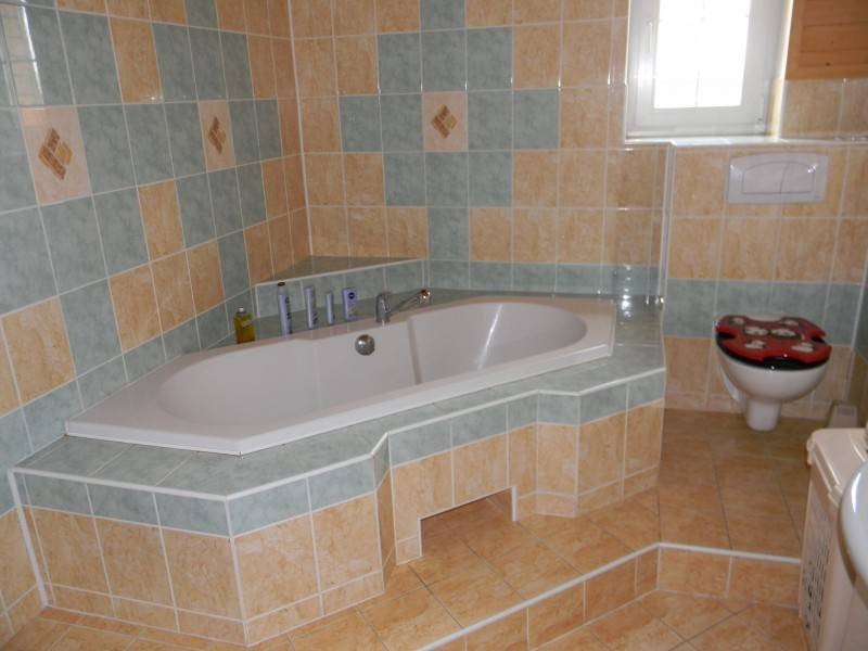 Sociální zařízení: V chalupě jsou 2 koupelny. V koupelně v přízemí je WC, vana, umyvadlo. Ve druhé koupelně v patře WC, sprchový kout, umyvadlo.