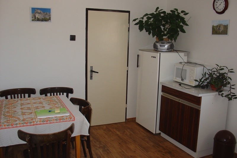 Stravování vlastní, k dispozici je prostorná kuchyň s velkým kuch. stolem, 6 židlí, kuch. linka, 2 lednice, el. sporák s el. troubou, mikrovlnka, varná konvice, nádobí.