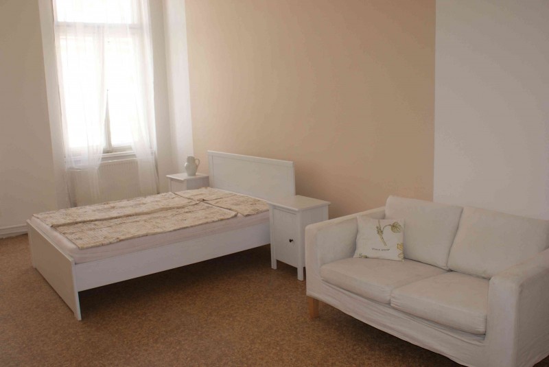 1 Typ ubytování dva společné průchozí dvoj - pokoje o rozloze 24 a 23,5 m2 se sprchou, sociálním zařízením 14 m2, tj. 4 lůžka s výhledem na náměstí.