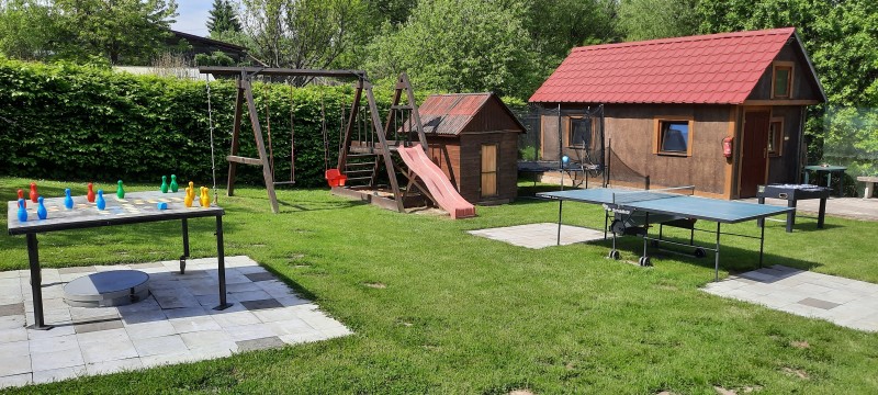 30% SLEVA s ceny od 15.4.- 16.6.2024. Rekreační domek s občerstvením (klienti penzionu se nemusí bát o klid a o to, že by chodili hosté občerstvení do prostor objektu penzionu) na okraji malého městečka Strmilov v České Kanadě má 3 apartmány pro celkem 17 osob. V přízemí se nachází 2 apartmány. Apartmán I. pro 7 osob má jeden čtyřlůžkový a jeden třílůžkový pokoj. Apartmán II. má 1 čtyřlůžkový a jeden třílůžkový pokoj.Každý apartmán má svůj vlastní vchod. Mezi apartmány jsou dveře, které se můžou uzamknout nebo můžou být apartmány průchozí. Ze dvora je točivé schodiště na terasu ze zábradlím kam se vstupuje do samostatného apartmánu III. pro 3 osoby. Vnitřní prostory objektu jsou nekuřácké. Na soukromé zahradě na vlastní nebezpečí můžete využívat zapuštěný, krytý bazén 7,5m/3,5m v provozu od 1.5.-15.9., posezení u bazénu a grilu, zahradní gril, zahradní uzaviratelnou chatu(pařibouda) s posezením. V chatě je rozveden el. proud s osvětlením, elektronické šipky. Dále je na zahradě dětský koutek, s houpačkami, lanem na šplhání, skluzavkou, pískovištěm, zahradní domeček, stolní tenis, velká trampolína s ochrannou sítí,stolní fotbal,velké zahradní člověče nezlob se,ruské kuželky, badminton,kuželky a další(za děti zodpovídají rodiče). Je zde i uzamykatelná garáž například pro vlastní kola a kočáry.Vedle penzionu je malé rychlé občerstvení kde se dá koupit točené pivo a točené limo, různé druhy pizzy,grilované kuřecí křidélka,bagety,tortilly,hranolky,řízek,utopenci,nakládaný hermelín a jiné jídlo, nanuky a zmrzlina, víno, tvrdý alkohol, káva, čaj a různé cukrovinky (občerstvení je v provozu od 1.6.- 31.8.nebo dle dohody například na silvestra a má pružnou pracovní dobu,možnost platby kartou). V celém objektu a na zahradě je WiFi. V okolí Strmilova se nachází spoustu krásných lesů vhodné ke sběru hub a borůvek a mnoho rybníků k rybaření. Strmilov se nachází v takzvané oblasti Česká Kanada. Rybaření je zde ve Strmilově a okolí na více místech například už 30m od objektu kde teče Hamerský potok. Dále 300m od objektu na rybníku zájezdek. V zimním období 2km od objektu se chytají pstruzi na dírky kde si můžete dát i grog, svařené víno nebo čaj na zahřátí. Koupání u objektu v bazénu, v autokempu Komorník 2km, v Jidřichovým Hradci v novém aqua parku 20km nebo v Jihlavě velký aqua park 45km. Kolem Strmilova převážně lesem jsou dobře značené cyklostezky. V zimním období je v Mrákotině 12km sjezdovka z vlekem.