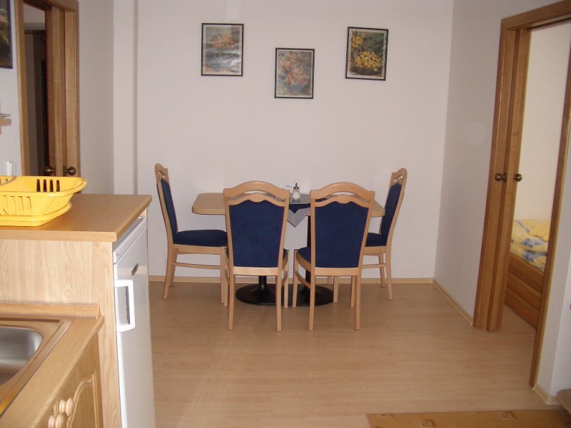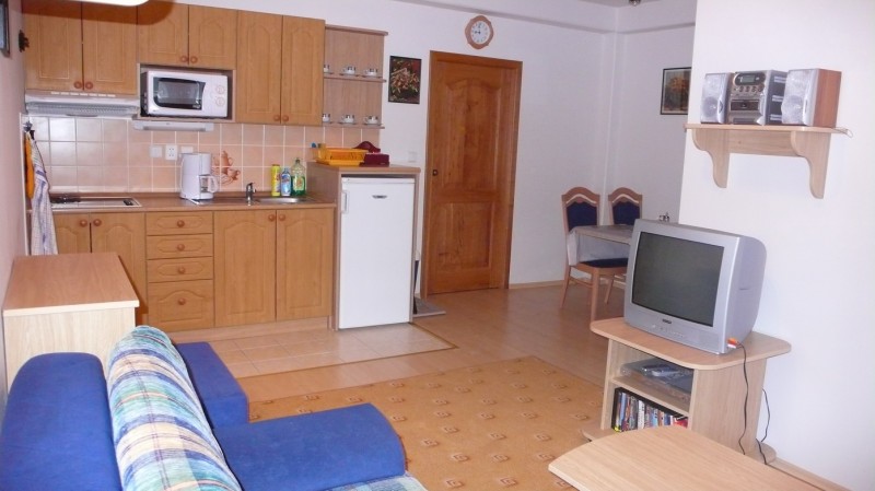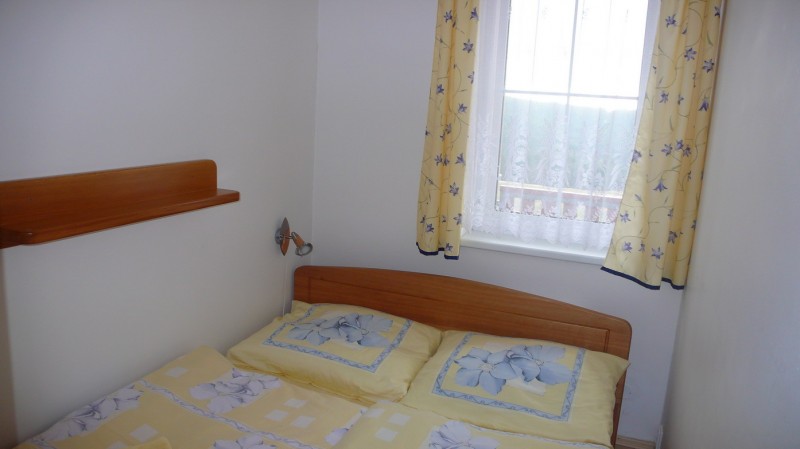 POPIS APARTMÁNŮ: předsíň, koupelna se sprchovým koutem a WC, ložnice s manželkým dvojlůžkem, obývací pokoj s dalšími dvěma lůžky, kuchyňský a jídelní kout, zasklený balkon s posezením.