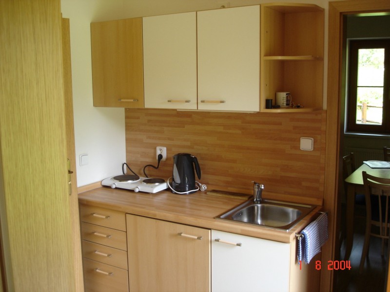 Nově postavený dům (2003) na stráni pod lesem s výhledem na obec Srní a široké okolí Šumavy. V apartmánu/studiu je kuchyňská linka (základní nádobí, elektrický dvouvařič, varná konvice, mikrovlnka, lednice), koupelna se sprchovým koutem+WC, chodba, místo na úschovu lyží (kol), povlečení, malá předsíň. K apartmánu patří dvě ložnice.Možnost využití venkovního ohniště a sezení. Možnost parkování.