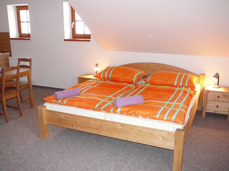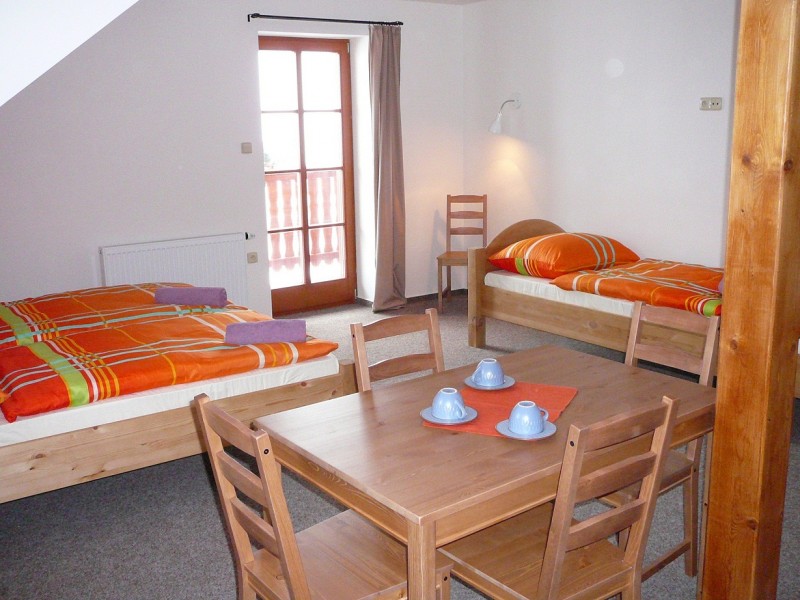 Ubytování v soukromí-novostavba.Stylově a komfortně zařízené pokoje.K dispozici jeden dvoulůžkový a jeden čtyřlůžkový pokoj s plně vybaveným kuchyňským koutem, koupelnou-(WC,sprch.kout,umyvadlo),TV,balkonem - s překrásným výhledem do údolí