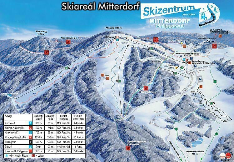 Lyžařské středisko MITTERDORF to je pět moderních dvousedačkových vleků a jedna sedačková lanovka s celkovou přepravní kapacitou více jak 8.000 osob za hodinu a strojově upravované sjezdovky různých obtížností s umělým zasněžováním.