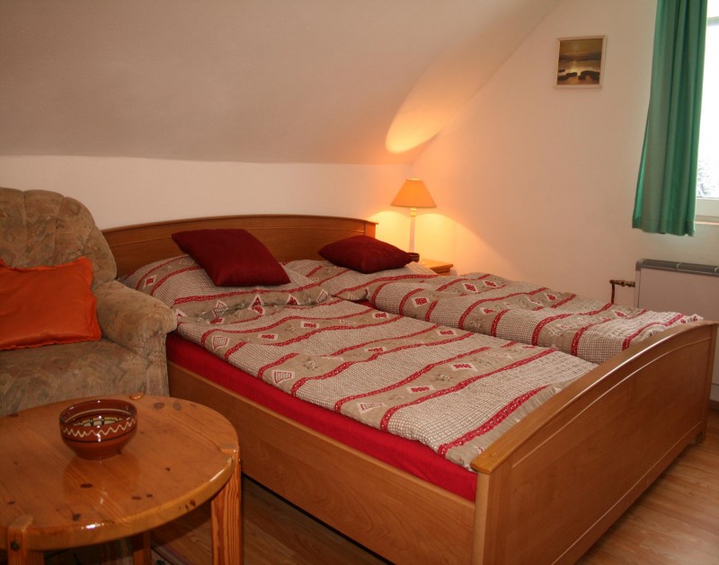 Ubytování je v domácím stylu o 9 pokojích 5x dvoj,2X tří,2X čtyřlůžkové s možností přistýlek,Kapacita 24 lůžek