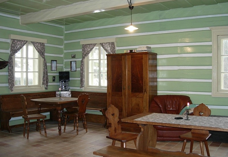 * Dobře vybavená kuchyň, velká společenská místnost s kachlovými kamny