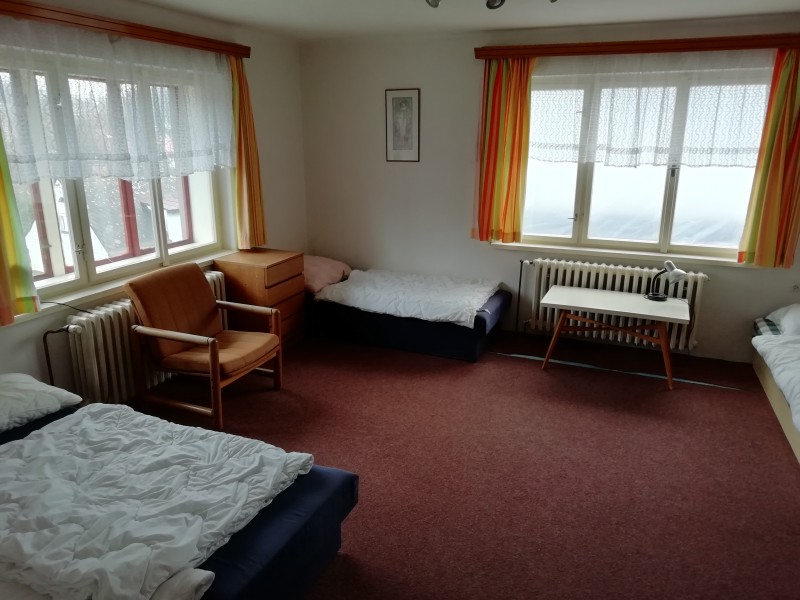 V současné době je maximální ubytovací kapacita 8 - 12 osob. A to 1x4 lůžka, 1x6 lůžek + možnost přistýlky ( 2 pokoje v patře, 1 v přízemí propojený s prostornou obytnou kuchyní.