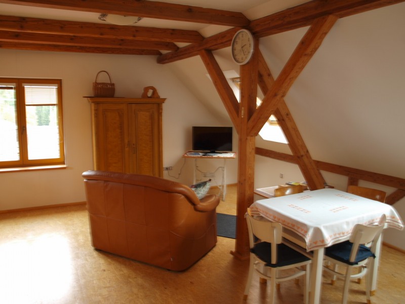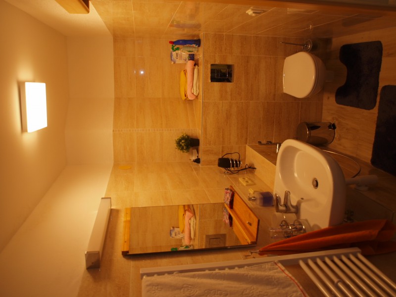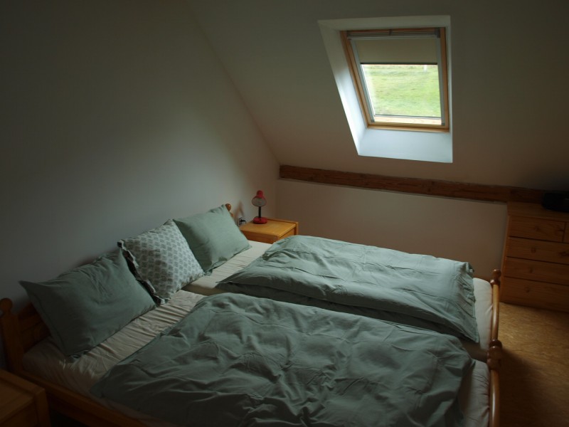 Nově rekonstruovaný apartmán, v přízemí koupelna a WC, ložnice s menší manželskou postelí, v patře druhá ložnice s dvěma samostatnými postelemi a obývací prostor s kuchyňským koutem