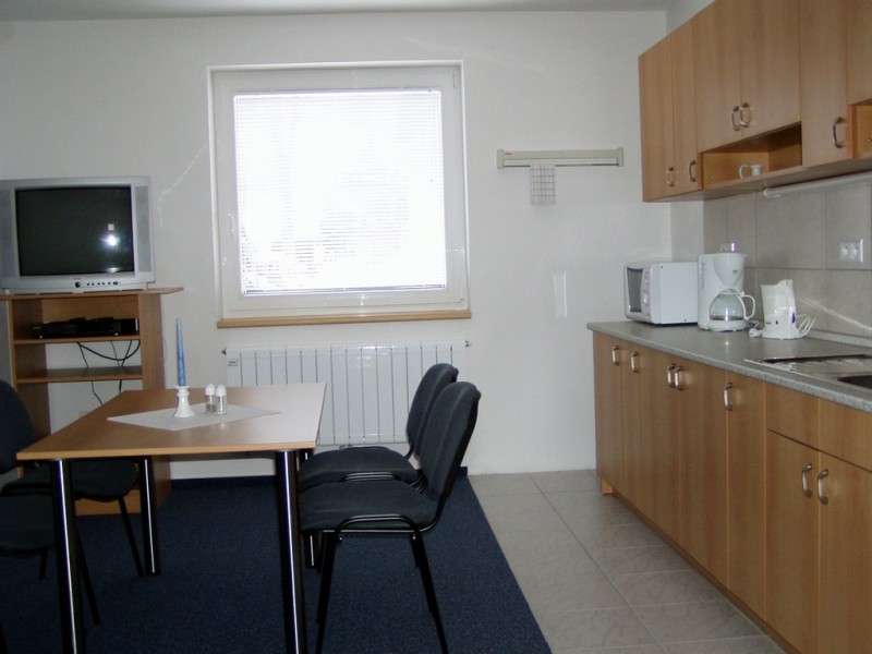Penzión má na každom poschodí spoločenskú miestnosť a veľkú, plne vybavenú kuchyňu na prípravu jedál. Penzión má k dispozícii stolný futbal a spoločenské hry