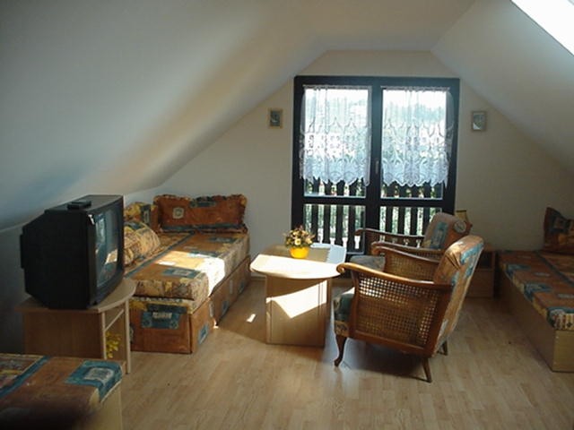 Na poschodí sú dva 4-lôžkové apartmány, ktoré majú samostatne kúpeľne , televízor a chladničku. Kuchyňa je spoločná a kompletne vybavená (rýchlovarná kanvica, mikrovlnka, riady ...)