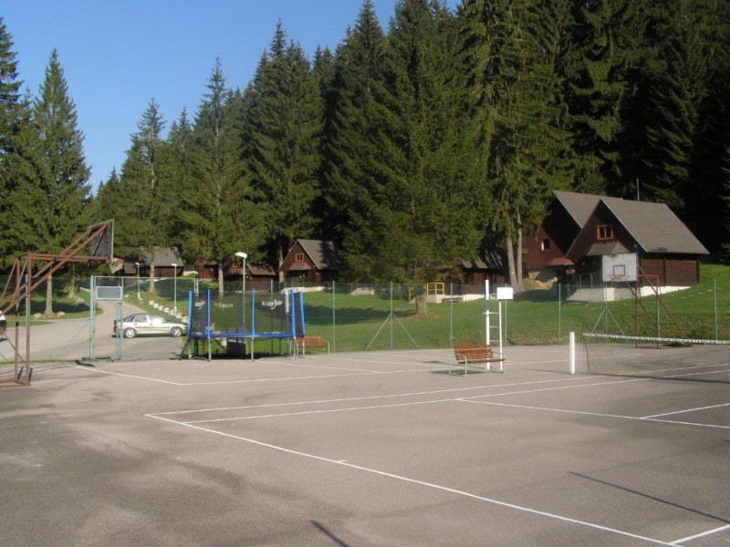 Ubytovanie: Pozostáva zo 14 samostatne stojacích chát ,každá chata je vybavená vstupnou miestnosťou, predsieň s rohovou lavicou, WC, sprchou, kuchynským kútom s chladničkou na prípravu studených jedál, spoločenská miestnosť so sedacou súpravou, , televízor, poschodie dve samostatne dvojpostelove izby 2 izby s možnosťou prístelky. Služby: parkovanie auto, moto, bus v areáli