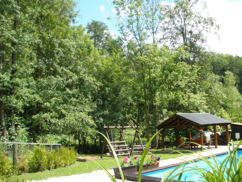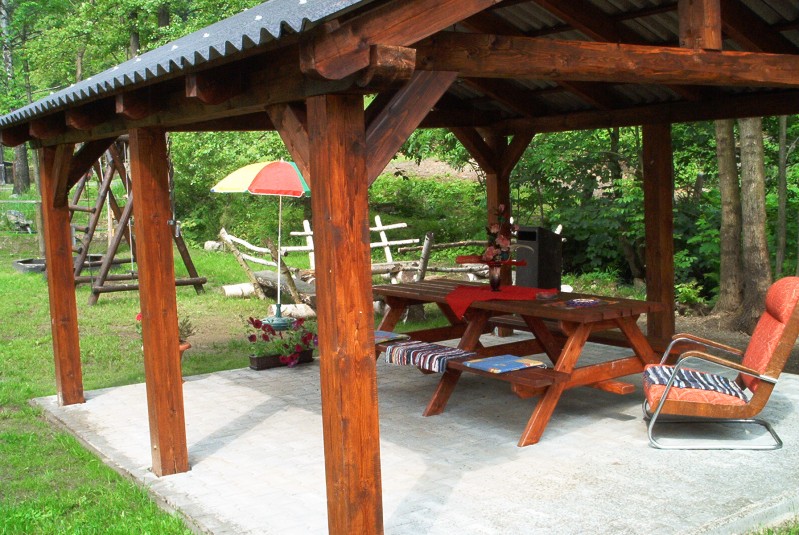 Chaloupka stojí na prostorné zahradě, která vybízí k pohodovému odpočinku a díky vybavení zahrady i případnému rekreačnímu pohybu. Zahradu lemuje horský potůček( s malým množstvím protékající vody ), který v letních měsícich můžete využívat k ochlazení svému nebo tekutin. Zahradě dominuje krytá pegola, kde určitě strávíte nejvíce času a zabudovaný bazén, který je velkým lákadlem pro letní pobyty. Další posezení je před roubenkou a u ohniště.