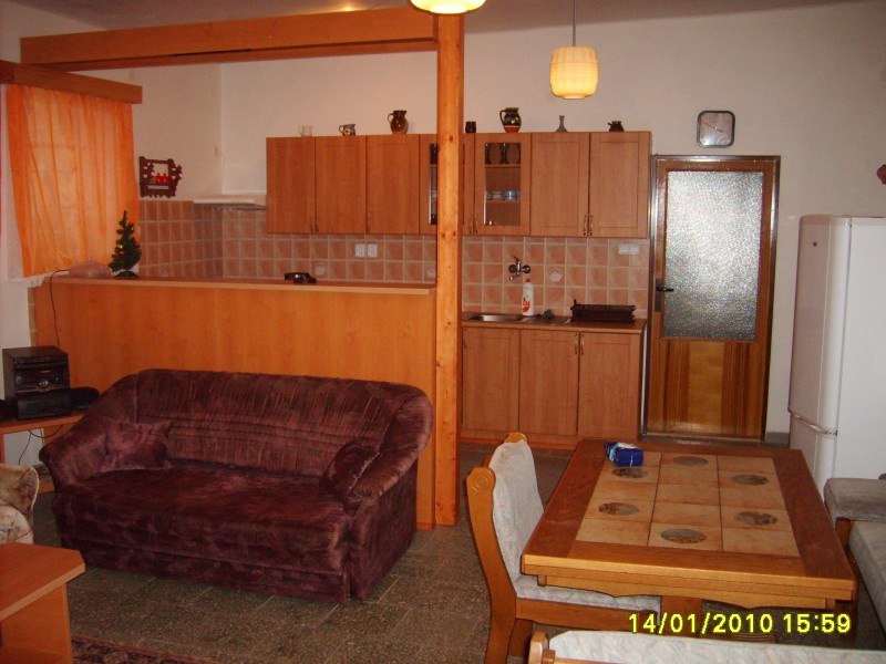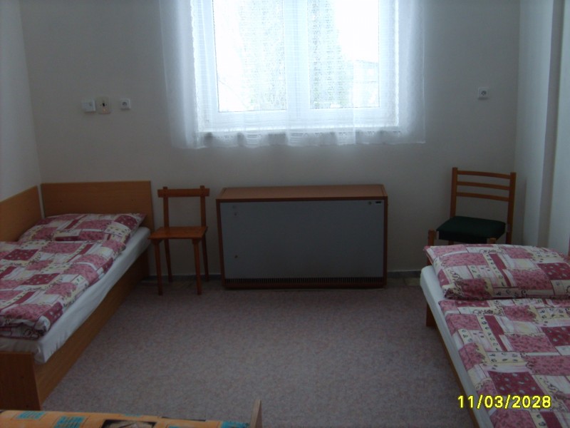Ložnice a pokoje: 4 x ložnice s kapacitou 2x5 1x3 1x2 lůžka. Kuchyň se společenskou místností, chodba, Wc, koupelna - sprchový kout. Sociální zařízení: Koupelna - sprchový kout, WC. Teplá voda nonstop. Vytápění: elektrické - akumulační, vnitřní krb na dřevo.