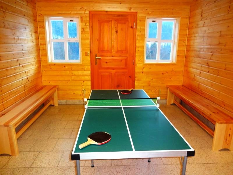 Uvnitř je dále infrasauna pro 4 osoby, herna se stolním tenisem, stolní fotbal, úschovna lyží a kol. U chalupy je dětský bazén Ø 160cm, dětská skluzavka, houpačky, lana, pískoviště, prolézačky a trampolína. Majitel v objektu nebydlí, neposkytuje ložní prádlo, požaduje úhradu el.energie, dřeva a rekr. popl.obci. Pes zde není povolen a parkování je v létě přímo u objektu, v zimě 80m od objektu.
