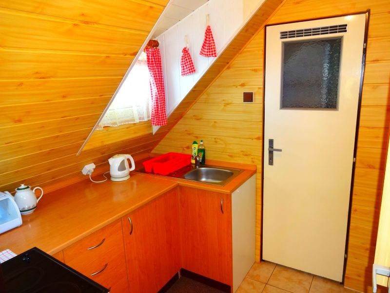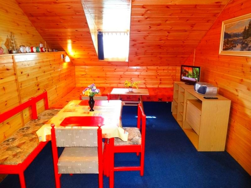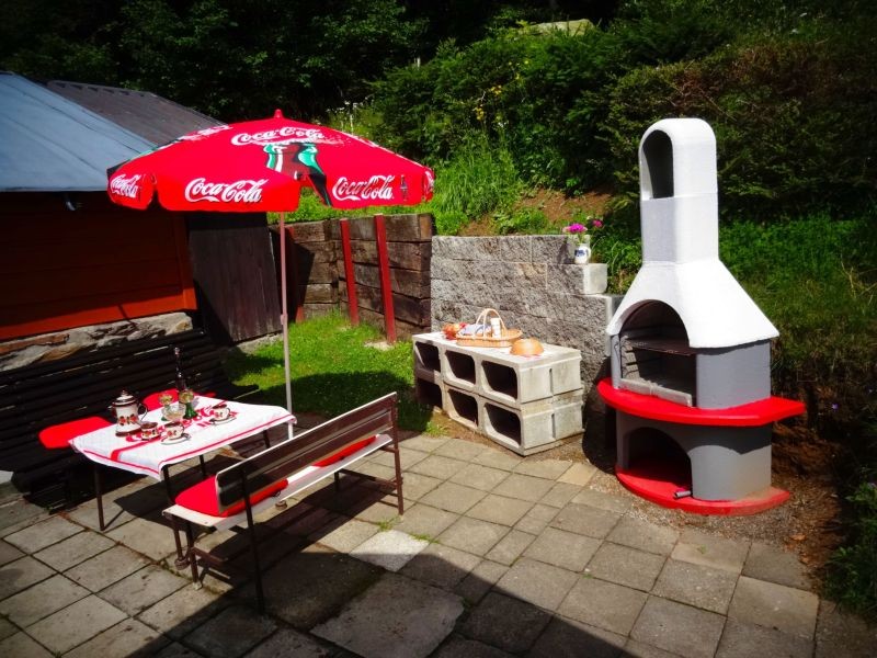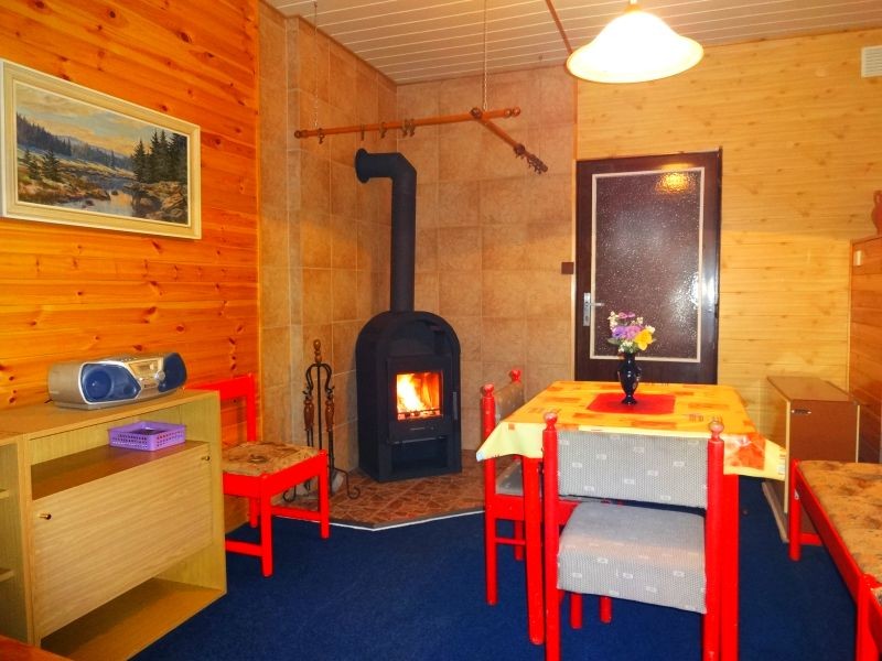 Vybavení pěkné s dřevěným obložením v celé chatě. Obývací pokoj s krbovými kamny, tv-lcd a wifi internet. Dále je zde lednice s mrazničkou, mikr.trouba, var.konvice, el.sklokeramický dvouvařič, topinkovač, koupelna se sprchou a wc. V chatě je také el.topení (akumulačky), úschovna lyží, kol a u chaty je gril, venkovní posezení, dětská skluzavka, houpačka, lana, pískoviště a prolézačky. Majitel v objektu nebydlí, neposkytuje ložní prádlo, požaduje úhradu el.energie, dřeva a rekr. popl.obci. Pes zde není povolen a parkování je celoročně přímo u chaty.