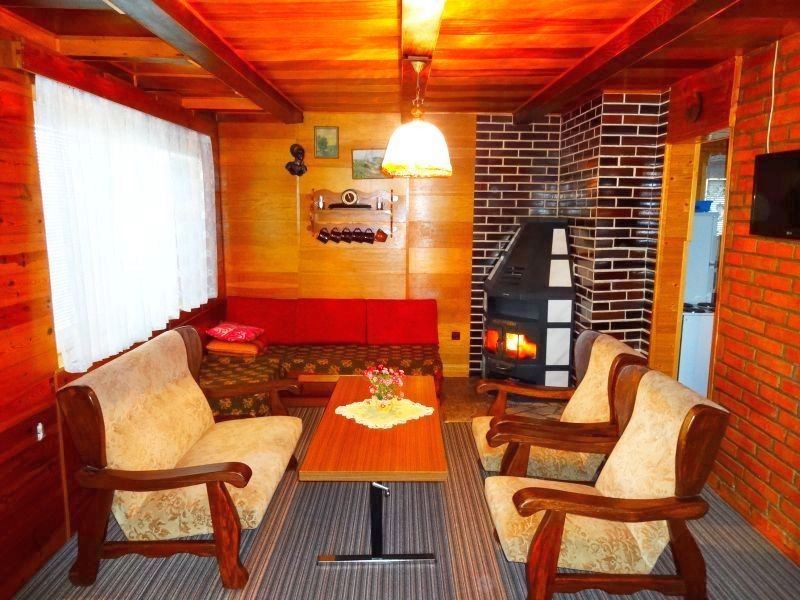 Vybavení pěkné moderní s dřevěným obložením, lednice, mraznička, mikr.trouba, var.konvice, sedací souprava, mobilní internetové připojení, tv-lcd, krbová kamna, el.topení, zahr. nábytek, venkovní posezení, dětský bazén Ø 160cm, gril, venkovní krb, ruské kuželky, pískoviště, trampolína, skluzavka, houpačka a stolní tenis. Maj.neposkytuje ložní prádlo, úhrada el.energie, dřeva a rekr.popl. obci. Pes není povolen a parkování je vedle objektu.