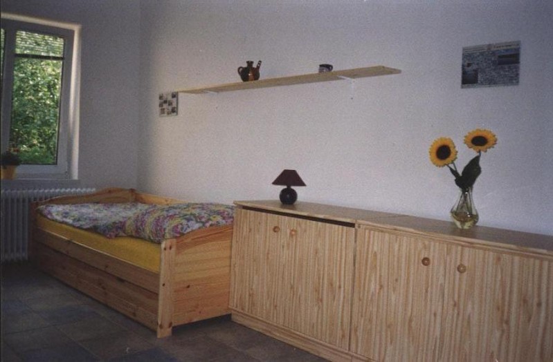 Ubytování: Velký byt: dvě ložnice (2, 3 lůžka), obývák s TV, kuchyňka, soc. zař., možnost přistýlky. Malý byt: větší ložnice (4 lůžka), jídelna s TV, kuchyňka, soc. zař. Apartmány: celkem čtyři. Dva dvoulůžkové, každý samostatný vchod, vlastní kuch. kout a soc. zař. Jeden pětilůžkový, dvě ložnice se samostatnými vchody, kuchyňkou a soc. zař. Jeden čtyřlůžkový, dvě ložnice se samostatnými vchody s kuchyňkou a soc. zař. Celkem 22 lůžek, úschova kol, parkování, po domluvě možnost postavení stanů. K chalupě patří velký dvůr, dvě zahrady s ohništi a louka u řeky.