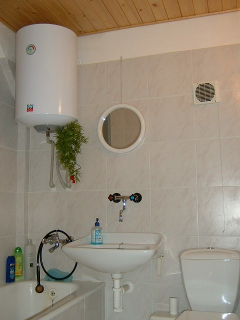 Vytápění: K vytápění slouží krb ve společenské místnosti. V případě chladnějšího léta je k dispozici přímotop - elektrický radiátor.