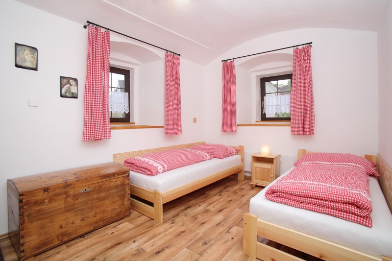 Chalupa poskytuje pohodlné ubytování až pro 8 osob ve 2 ložnicích a 1 společenské místnosti s televizí.
