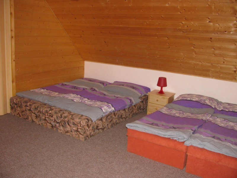 Chata k pronajmutí poskytuje možnost ubytování pro 9 osob v celkem 2 ložnicích.