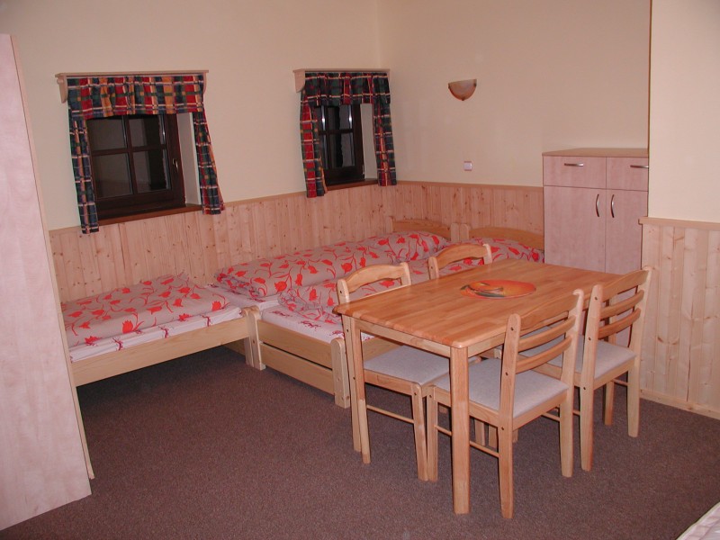 Pokoje jsou 3x2 lůžka + 1 přistýlka, 5x3 lůžka, 4x4 lůžka + 1 přistýlka.
