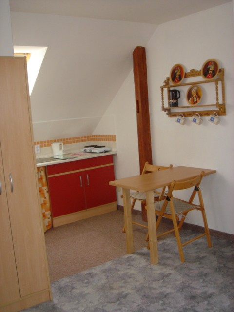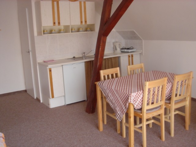 Apartmán č. 2 v 1. patře pro 2 osoby, kuchyňský kout, jídelní stůl, koupelna , WC.