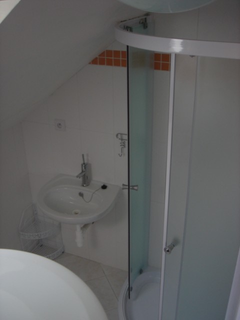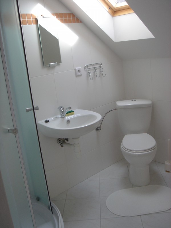 Apartmán č. 3 v 1. patře pro 4 osoby, kuchyňský kout, jídelní stůl, mikrovlná trouba, koupelna, WC.