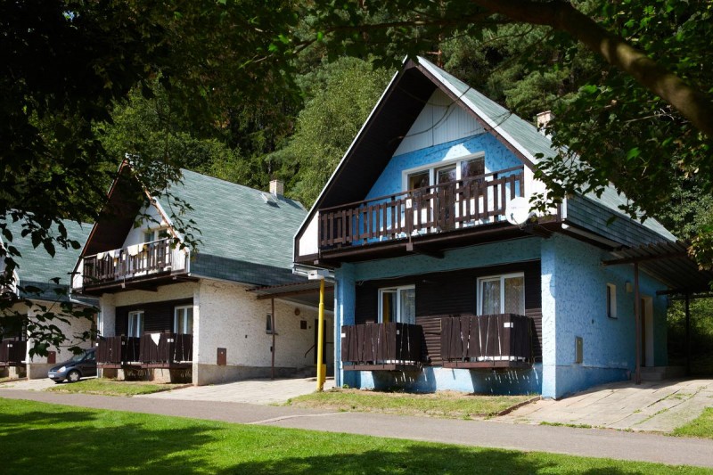 Areál nabízí ubytování ve zděných rekreačních domcích, finských chatách,