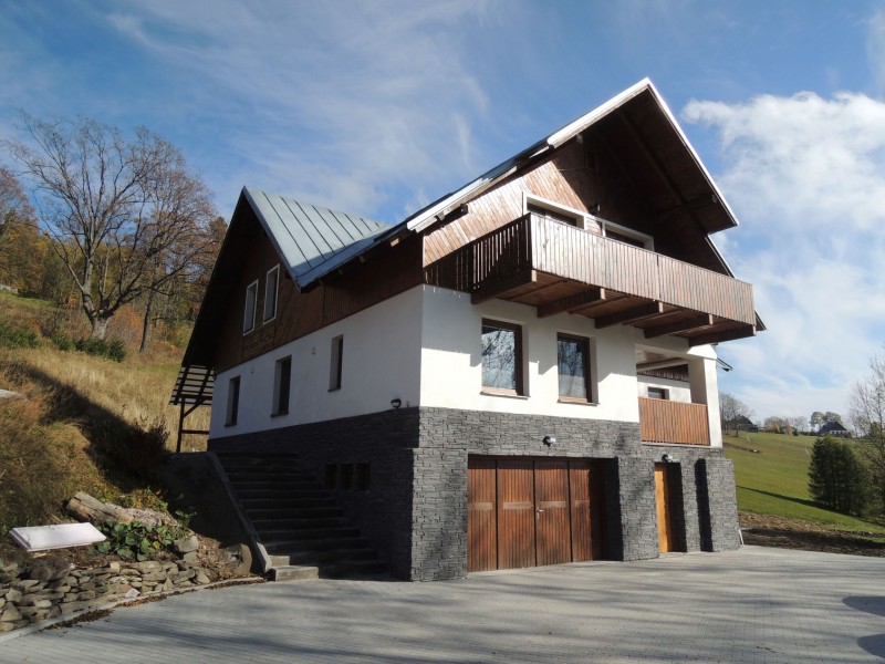 Kapacita je 16 osob. Pronajímáme kompletně celá dvě patra. V přízemí se nachází prostorná lyžárna, herna pro děti a bar s posezením, vybavený lednicemi a výčepním zařízením. Můžete si s sebou koupit soudek a s přáteli či rodinou si po večerech v klidu popíjet pivko. V další místnosti se nachází sauna s místem na relaxaci. V prvním patře jsou 4 pokoje, každý pro 4 osoby a každý s vlastní koupelnou se sprchovým koutem a sociálním zařízením. Dále společný prostor s jídelnou a plně vybavenou kuchyňskou linkou včetně myčky, mikrovlné trouby a kávovaru.