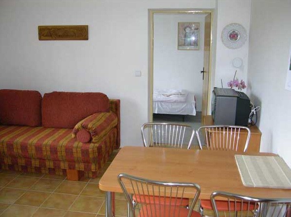 2 ? pokojový apartmán ? pro 4 osoby. Zvířata povolena, ložní prádlo a ručníky v ceně, nástup kdykoliv. Parkování před objektem. E-topení.