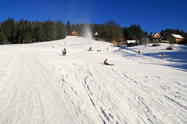 Horská chata Karolinka se nachází na samotě u lesa, 5 km od Velkých Karlovic.